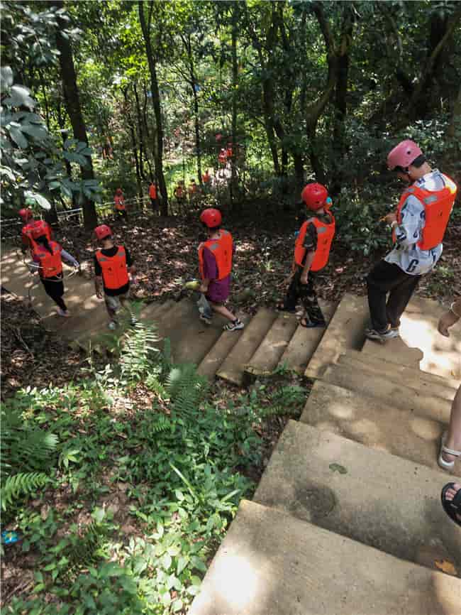到達進士河漂流景區(qū)后大家稍作休整便輕裝上陣,搭乘專供巴士來到漂流點,在漂流點穿上景區(qū)提供的救生衣和安全帽后,在林中步行幾分鐘便正式開始漂流!