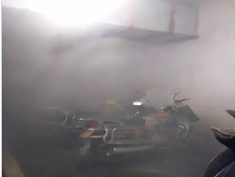 兩分鐘不到,鄧步雄趕到了車庫現(xiàn)場,出現(xiàn)的一幕他至今記憶尤新:只見車庫出口處,一輛機動摩托車正在燃燒,而它旁邊還有一輛白色小車和幾輛摩托車,燃燒的大火愈演愈烈,情況十分危急。“必須馬上進行滅火處置”,這是閃現(xiàn)在他腦海的第一個想法。于是,他一面用對講機呼叫隊友支援,一邊拿起車庫內(nèi)的滅火器進行滅火。在隨后趕來的隊員鄭興偉配合下,兩人迅速將大火撲滅。